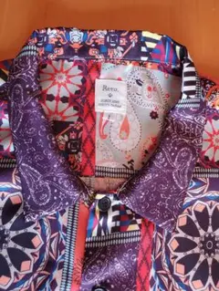 古着 総柄 レトロ スカーフ バブル 奇抜 ポリエステル 長袖 LSシャツ