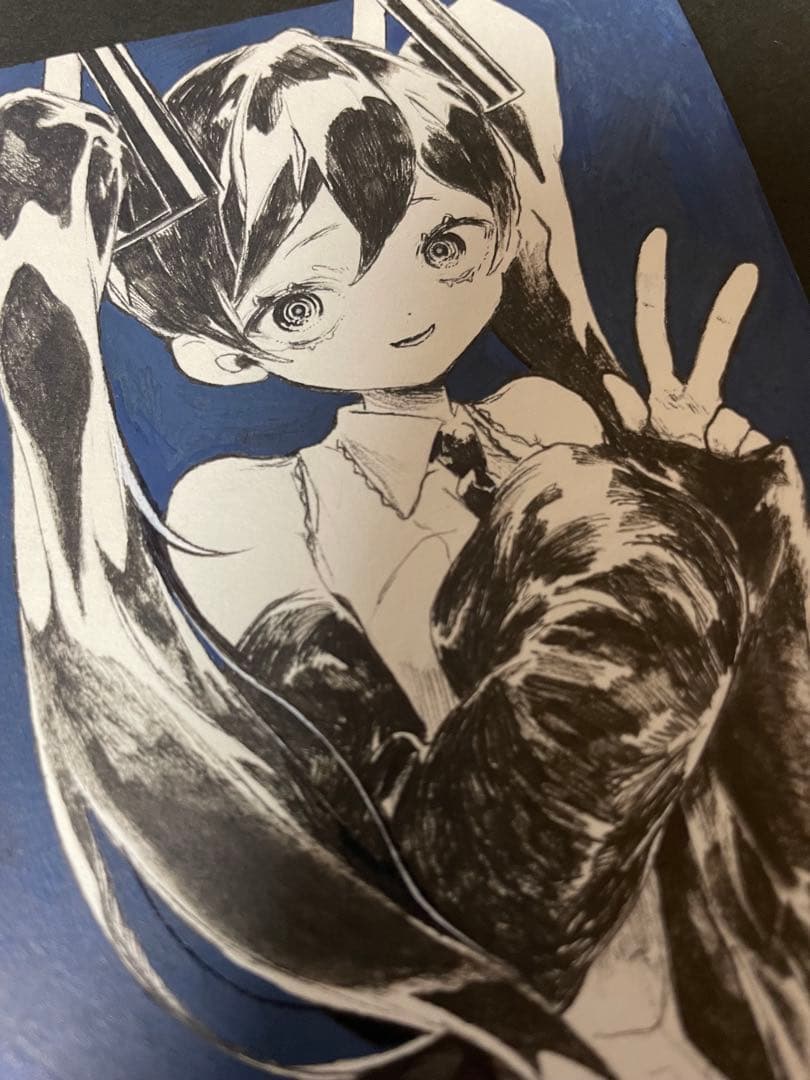 y*⁺様 手描き アナログイラスト ペン画 初音ミク 原画 ドローイング