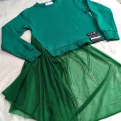 グリーンスウェットシャツと同系色シアーのデザイントレーナー本体コットン素材
