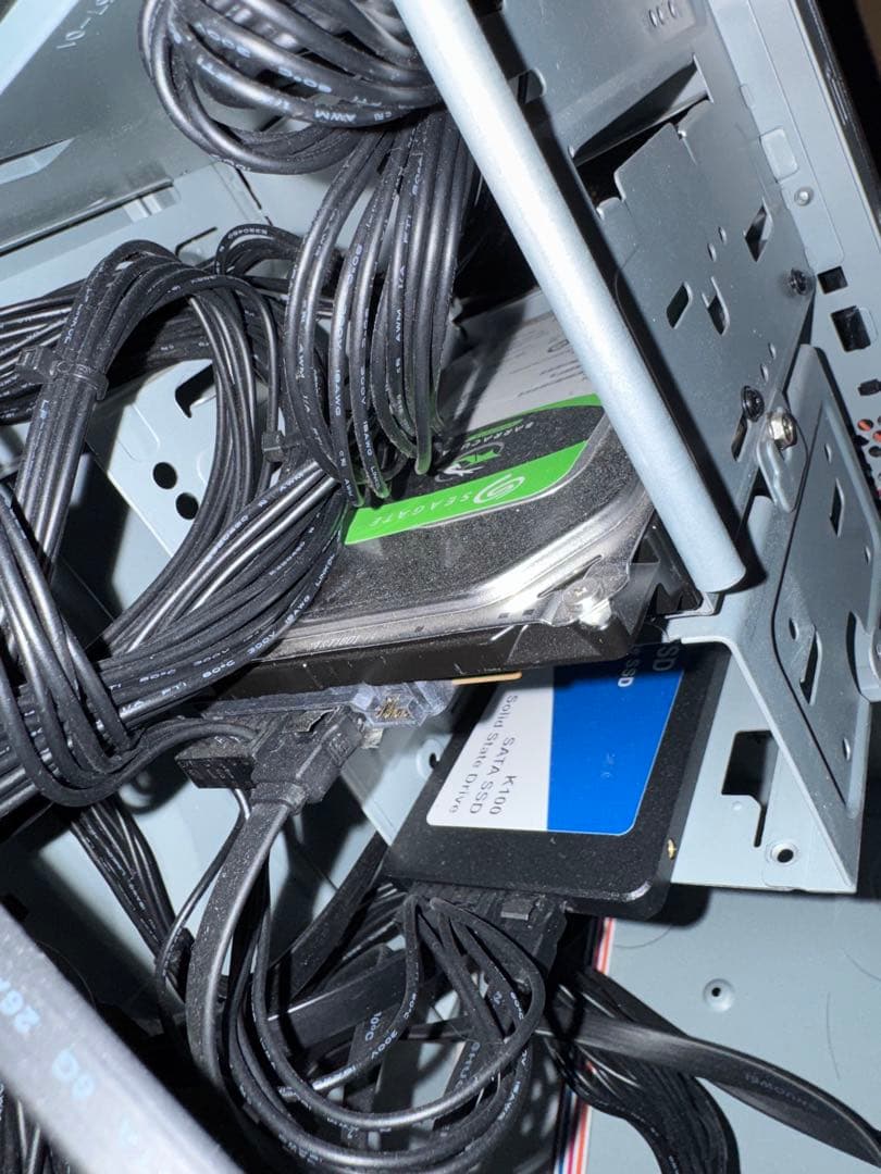 ケースには傷があります。1枚目の1番上の金具だけ外れたので両面テープで固定しています。動作には影響ありません。