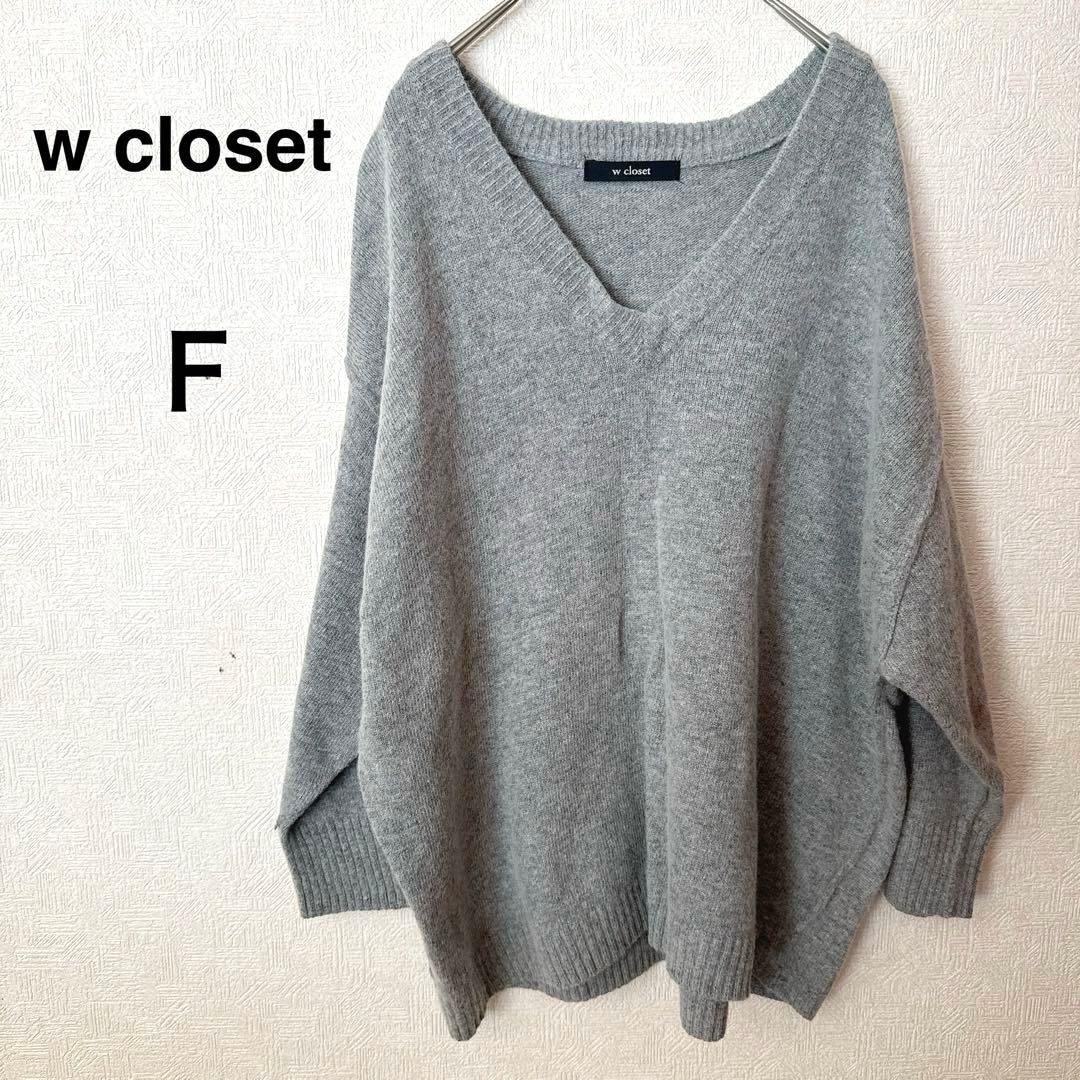 【w closet】✨グレー Vネック ニットセーター✨フリーサイズ✨カジュアル
