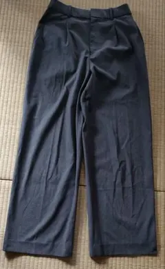 【美品】自由区 ウォッシャブル グレーチェック柄ワイドパンツ ウェストゴム 36