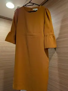 スウィートマミー マスタード色 フレア袖 ひざ丈ワンピース