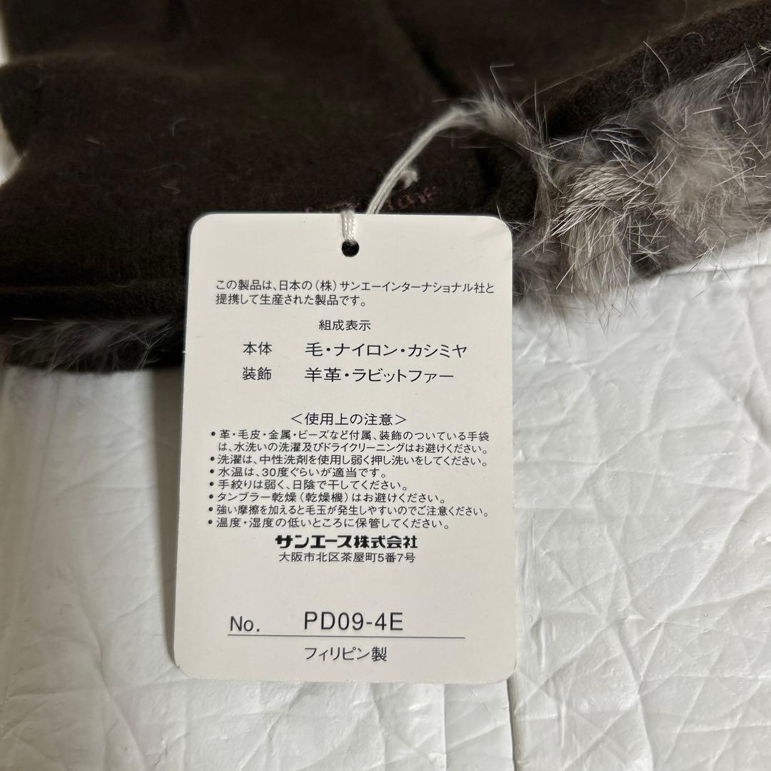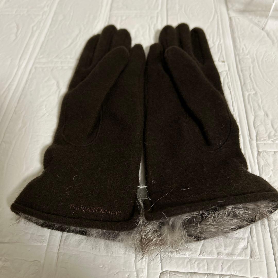 ピンキーアンドダイアン 羊革・ラビットファー装飾 毛ナイロン カシミヤ 手袋