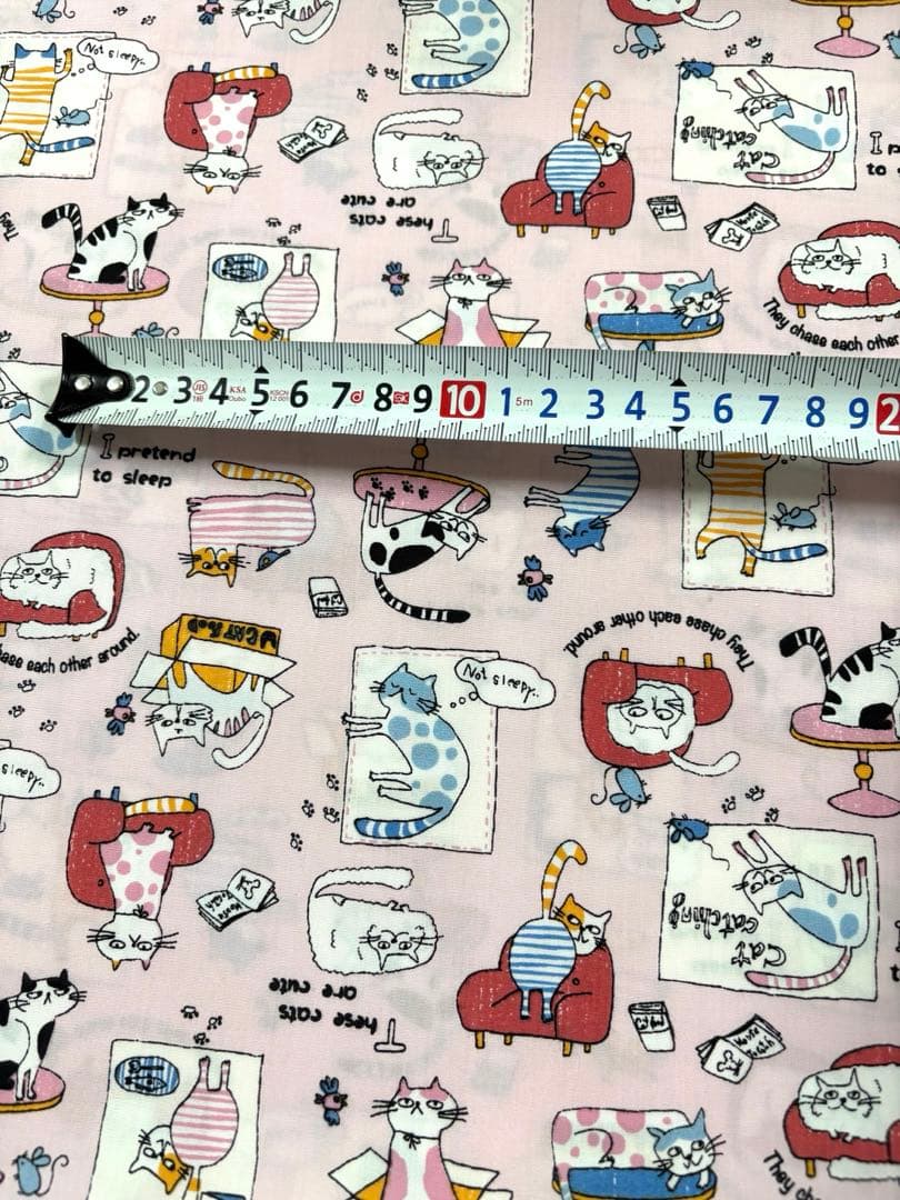 生地 ハギレ くつろぎネコ ピンク TCブロード やや張りあり