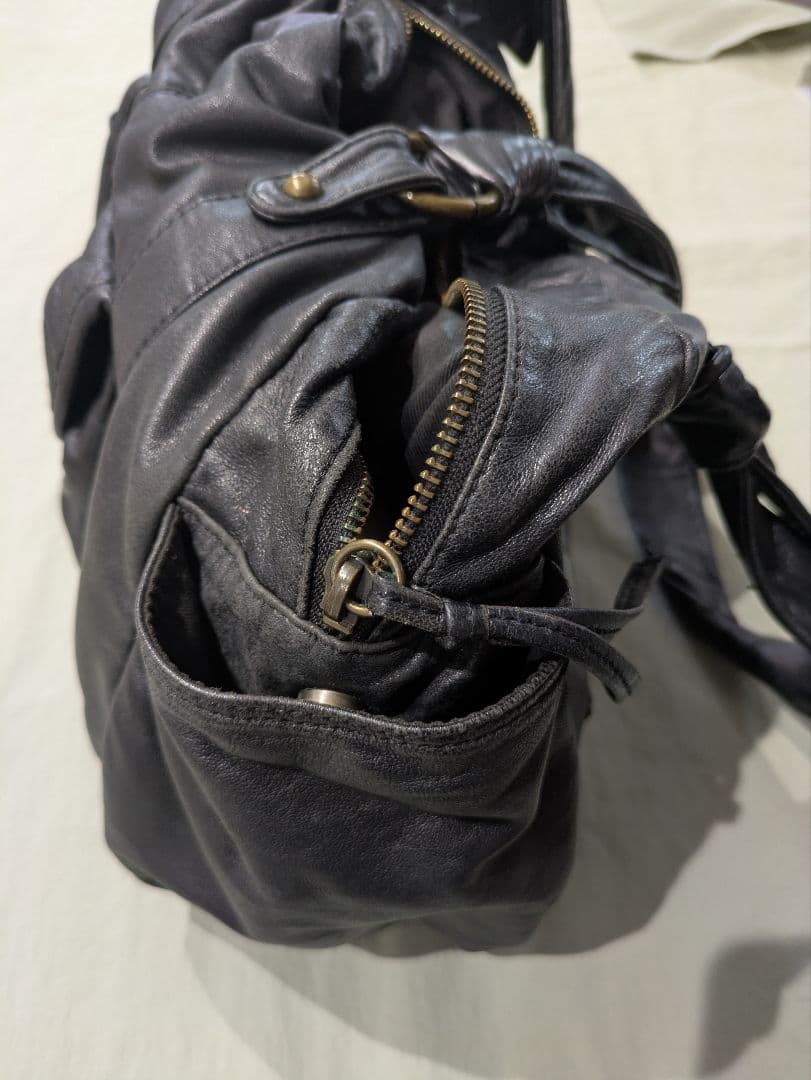 レザー(豚革) ショルダーバッグ ブラック 大容量 カジュアル