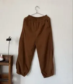 ダークブラウン ワイドパンツ ゴムウエスト 肌触りのよい柔らかい生地 L