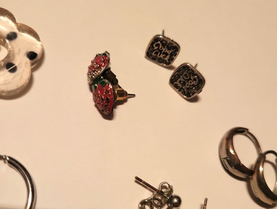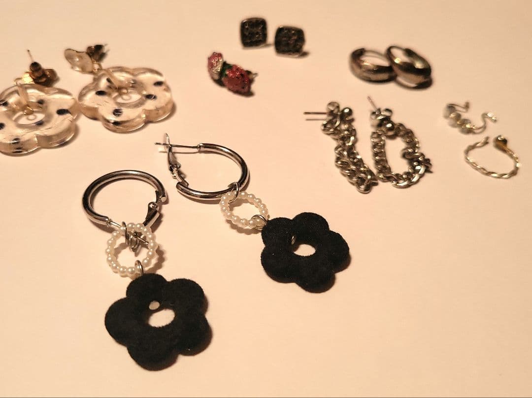 ピアス&イヤーカフセット 花柄、いちご