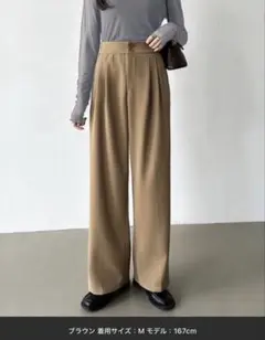 未使用 韓国COCOMOMOセミワイドタックスラックスパンツ ブラウン L