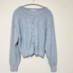 美品!GU シャイニークルーネックカーディガン レディースXLサイズ水色