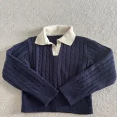 【韓国の弘大で購入】レディース ニット 長袖 ネイビー