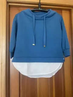 hk works london フェイクレイヤードパーカー プルオーバー ブルー