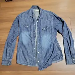 Lサイズ 長袖デニムシャツ インディゴブルー