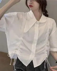 レディース シャツ️ Lサイズ ストライプ 灰色 グレー