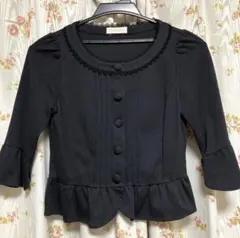 GRL リボンベルト付きボリュームスリーブショートコート ブラック