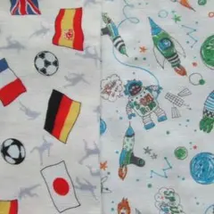 ダブルガーゼ ハギレ 生地 サッカー ロケット 白 2種セット