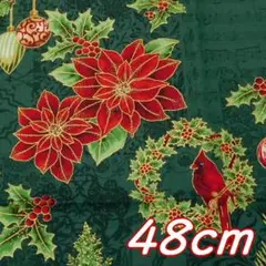 半端*110×48cm●布USAコットン ポインセチア カーディナル クリスマス