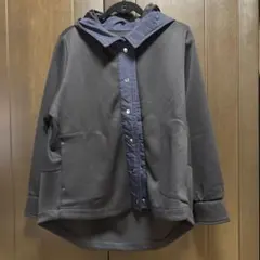 【美品】 切り替え ひざ丈ワンピース バイカラー グレー 青 長袖