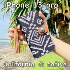 iPhone 13 pro ケース ネイティブ柄 コンチョ付き 手帳型 西海岸風
