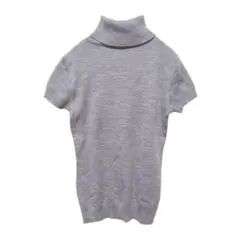 1447 【ザジ】 ニット 半袖 (M) タートルネック グレー 無地