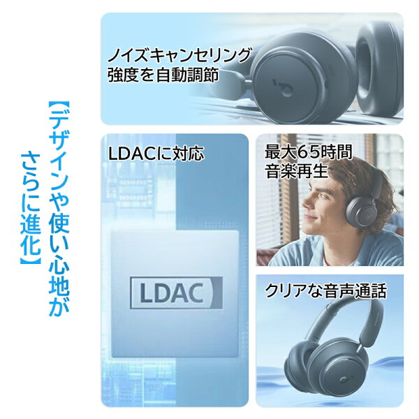 Anker Soundcore Space Q45 ワイヤレス ヘッドホン Bluetooth 5.3 最大65時間音楽再生 ウルトラノイズキャンセリング2.0 LDACハイレゾ対応 ワイヤレス 有線 対応 父の日 誕生日 プレゼント