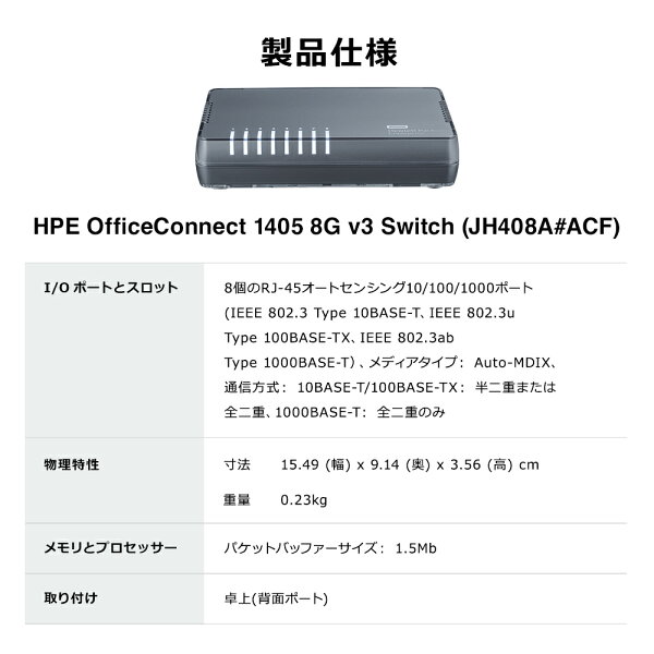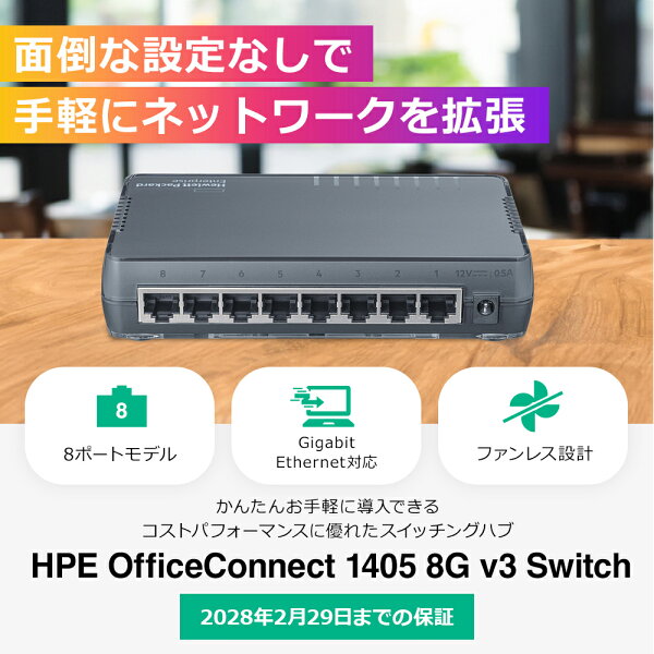 【76%OFF】【公式】8ポートスイッチングハブ HPE OfficeConnect 1405 8G v3 Switch JH408A#ACF[ HPE オフィスコネクト HUB 有線LAN ネットワーク 大容量データ Giga EEE 省エネ QoS 静音 ファンレス AUTO-MDIX オフィス 自宅 ]