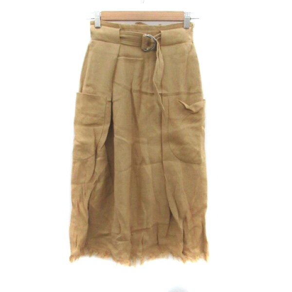 【中古】未使用品 ユナイテッドアローズ UNITED ARROWS ケミット kemit タイトスカート ロング丈 フリンジ 麻 リネン 38 M 茶色 ブラウン /HO13 レディース 【ベクトル 古着】 250904