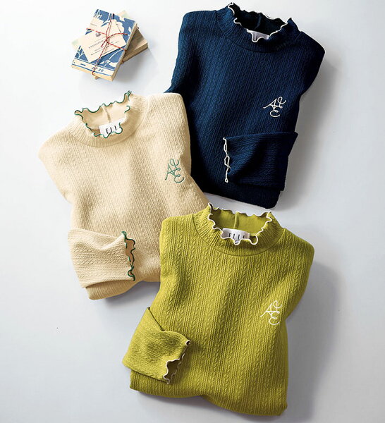 \早割全品10%OFFクーポン/カットソー プルオーバー <ELLE Active>配色使いジャカードプルオーバー M-5L ベルーナ belluna 2025春