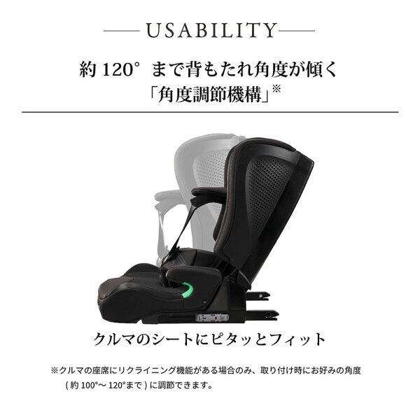 ※車の座席にリクライニング機能がある場合のみ、取り付け時お好みの角度(約100°~120°まで)に調節できます。