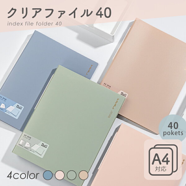 【エントリーで必ずP10倍】 クリアファイル A4 40ポケット 4色展開 くすみカラー シンプル スタイリッシュ ファイル ケース 書類 収納 オフィス 勉強 卓上 書類ケース 整理 書類整理 ファイル ブルー ピンク グリーン ベージュ deli
