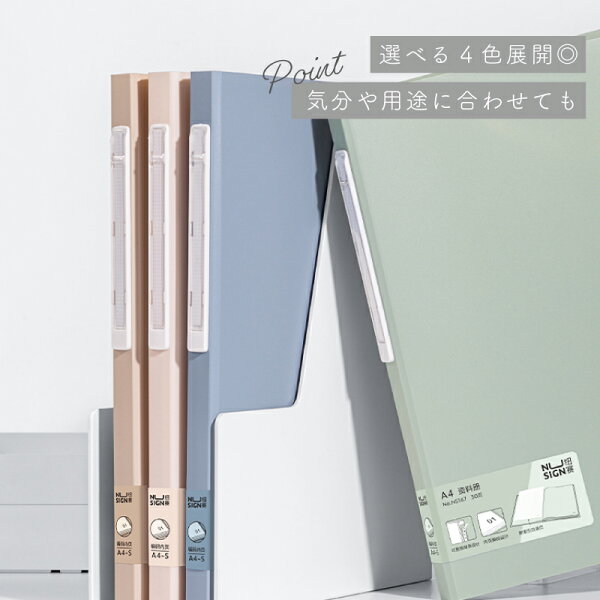 Nusign クリアファイル A4 40ポケット 4色展開 くすみカラー シンプル スタイリッシュ ファイル ケース 書類 収納 オフィス 勉強 卓上 書類ケース 整理 書類整理 ファイル ブルー ピンク グリーン ベージュ deli