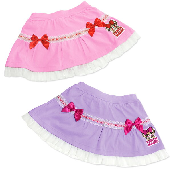 EARTHMAGIC【正規取扱店】アースマジック はしごレースフレアスカート マフィー インナーパンツ付 スカパン 女児 女の子 子供服 キッズ ボトムス 100cm 110cm 120cm 130cm 140cm ペールピンク ラベンダー 紫 【50%OFF】