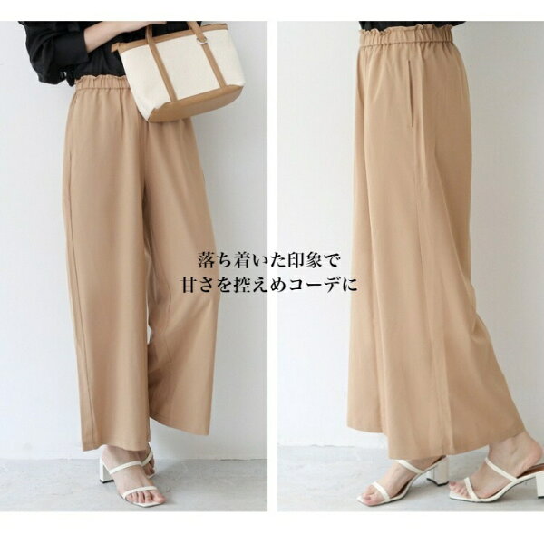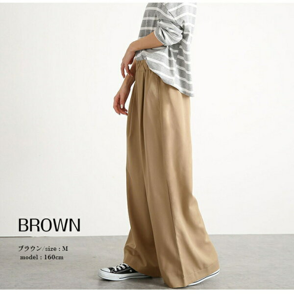 【クーポン配布中】選べる2タイプ ワイドパンツ レディース タックパンツ ガウチョパンツ フレアパンツ イージーパンツ リラックス タック入り ウェストゴム ウェスト紐 ロング丈 大きいサイズ 体型カバー 春 夏 秋 M L XL