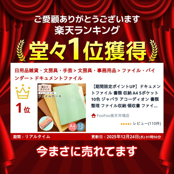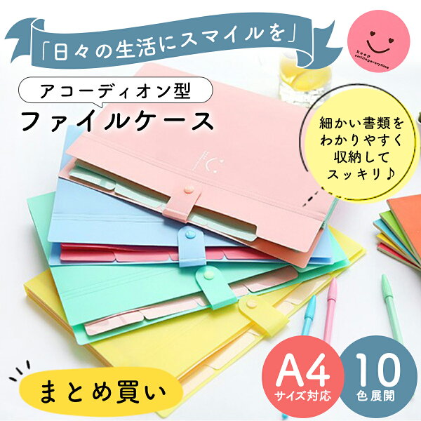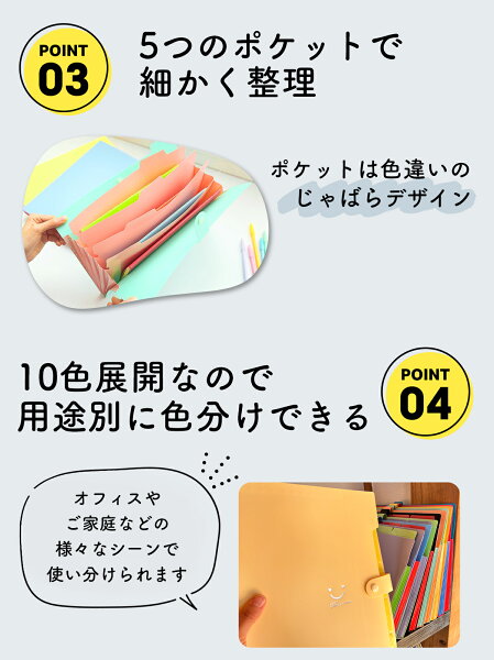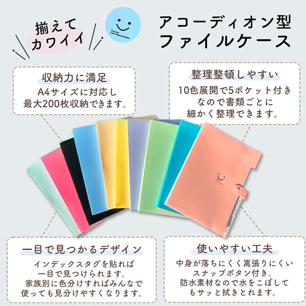 【期間限定ポイントUP】ドキュメントファイル 書類 収納 A4 5ポケット 10色 ジャバラ アコーディオン 書類整理 ファイル収納 領収書 ファイルケース 書類ケース レシート 家計管理 説明書 作品 可愛い パステル 防水 文房具 学校 オフィス 送料無料