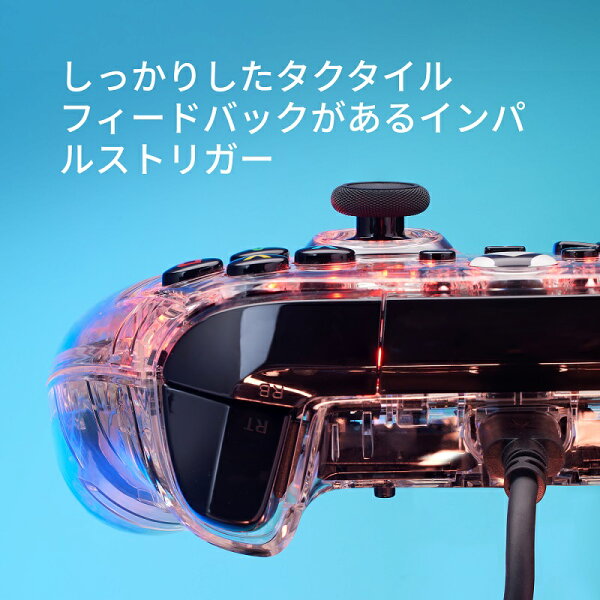 パワフルなデュアルランブルモーターとインパルストリガーが没入感とフォースフィードバックを次のレベルへと引き上げます。3種類のエフェクトと7つの色でライティングをカスタマイズすれば、自分のスタイルを演出できます。また、3.5mmステレオヘッドセットジャックも備えており、お気に入りの有線ヘッドセットを接続できます。
