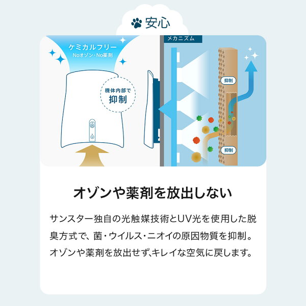 【OFT】 除菌脱臭機 SUNSTAR QAIS -air- 04A1J 消臭 ペット 犬 ネコ トイレ 臭い 部屋 空気清浄機 壁掛け におい ニオイ サンスター 多頭飼い 小動物 OFT フィルター コンパクト 静音 省エネ トイレ ホワイト シンプル 簡単 白 脱臭