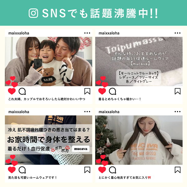 【期間限定20%OFF】【血行促進ウェア】モールニットクルーネック|ルームウェア パジャマ もこもこ 部屋着 ナイトウェア 暖かい かわいい おしゃれ 冬 メンズ レディース 外出もできる 長袖 疲労回復 血行促進で疲労軽減 |muacava 公式 ムカバ むかば