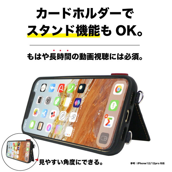🔹カードホルダーには、常に持ち歩く一枚を収納でき、カードホルダーを使えばスタンド機能にもなり動画視聴も楽々。