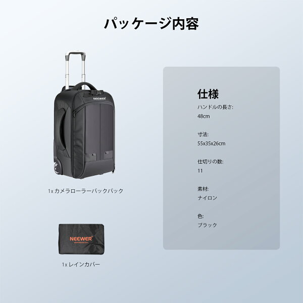-完璧で便利な旅行バッグ、このコンバーチブルローリングカメラ用バックパックは、カメラツールを保管して輸送するのを容易にし、いくつかの部分を忘れることや失うことを心配することはありません。-また、旅行中に便利に感じられるようになり、大型の写真機器やローラーブレード品質の車輪があれば、手軽に移動できます。 サイズ:13.8x10.2x21.7インチ/ 35x26x55センチ。