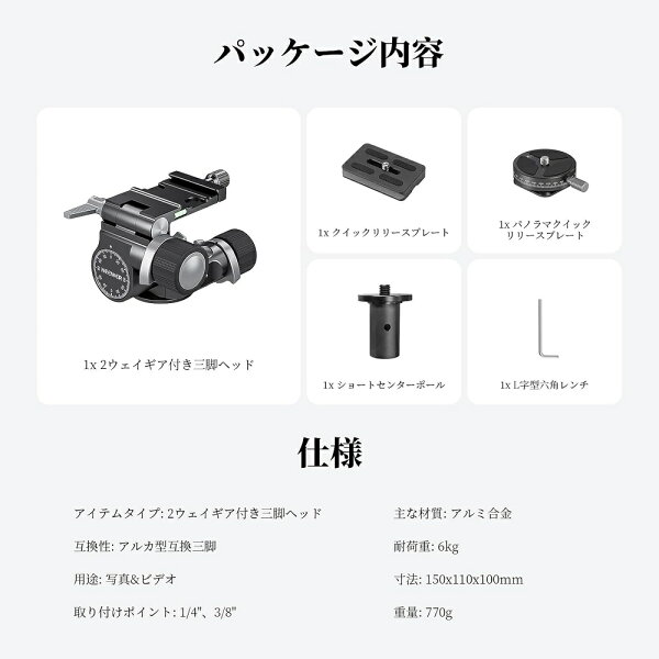 *パッケージ内容:1×2ウェイギア付き三脚ヘッド