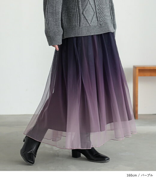 【ほぼ全品10%OFF 1/5 17:59迄】チュールスカート ロングスカート マキシスカート レディース ボトムス スカート 春 夏 秋 冬 グラデーション 無地 カジュアル モード シンプル ゆったり 体型カバー 大きいサイズ ※メール便可※【10】