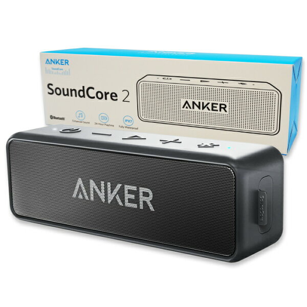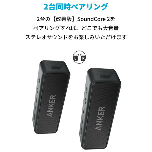 Anker Soundcore 2 (12W Bluetooth5.0 スピーカー 24時間連続再生)【完全ワイヤレスステレオ対応/強化された低音 / IPX7防水規格 / デュアルドライバー/マイク内蔵】(ブラック)