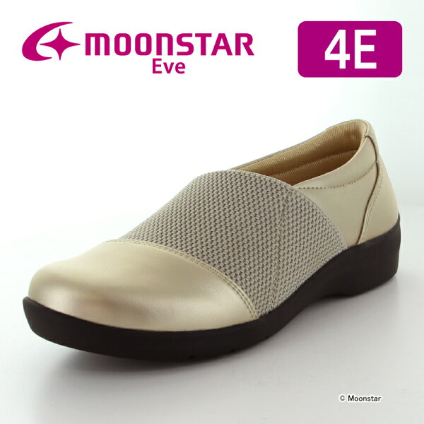 【1/9 20:00-1/16 1:59 10%OFFクーポン】ムーンスター イブ レディース コンフォート シューズ moonstar 幅広 4E ガラス防滑 ゴムのびフィット 母の日 敬老の日【セール再値下げ50%OFF】EVE 304 メタリックベージュ