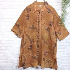 【AGASA】バティック柄 プリントワイドサイズシャツ 総柄 ブラウン 日本製