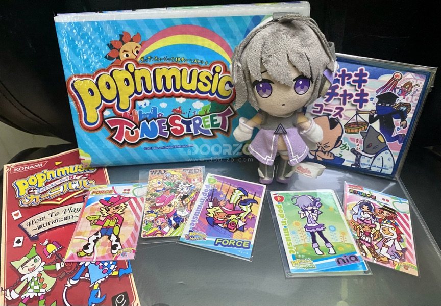 i got a bunch of pop'n music items in this order!! im super happy with the nia plush and the tune street picnic blanket, as well the meiko and luka rubber card case. everything arrived safely :-]