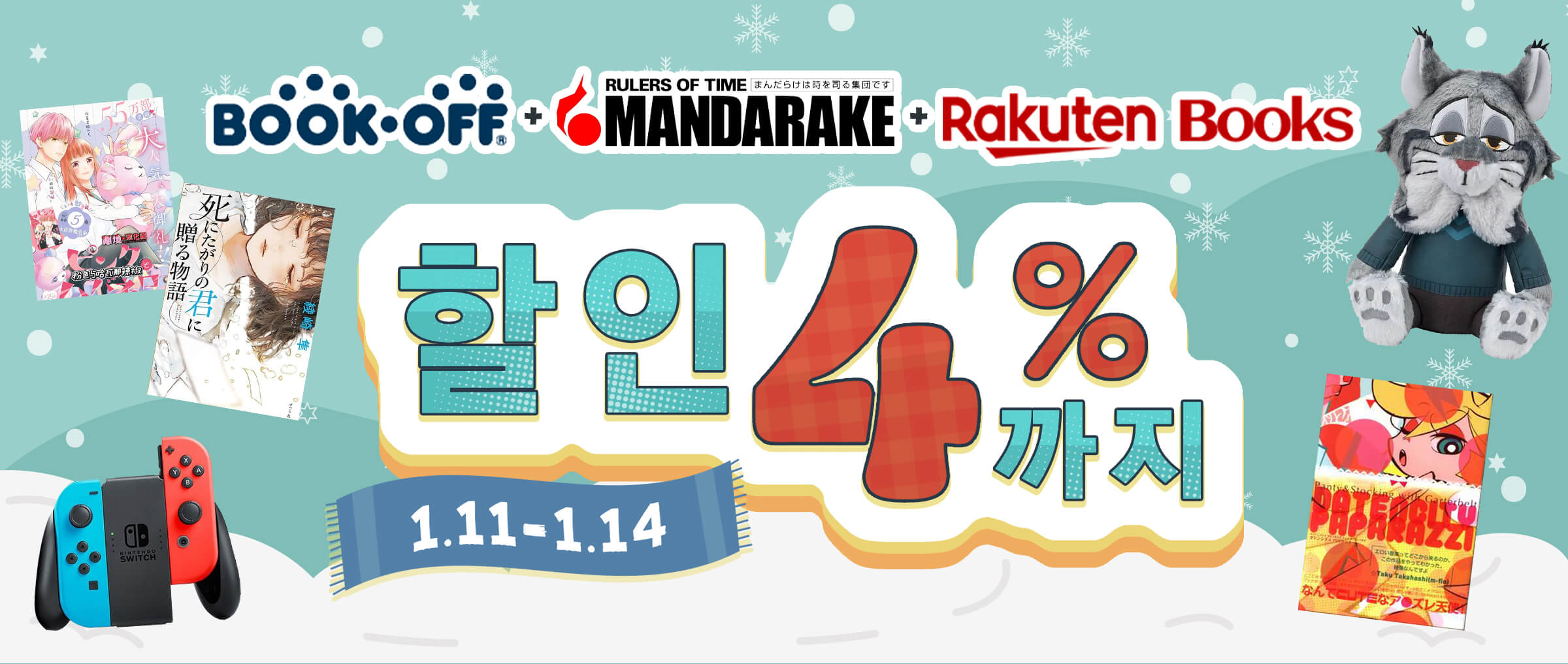 2.【4% 쿠폰】BOOK-OFF, Mandarake, Rakuten Books 에서 5,000엔 이상 주문 시 상품 가격이 4% 적용됩니다.