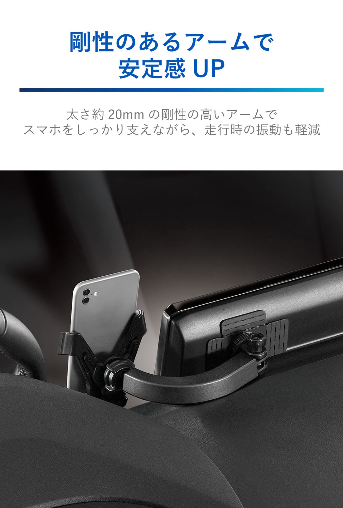 ・左右のウィングはラバーの質感と高い耐久性を併せ持つエラストマー樹脂、スマートフォンを載せる部分にはガタツキを抑える緩衝性に優れたソフトクッションを採用し、スマホを優しくホールドします。
