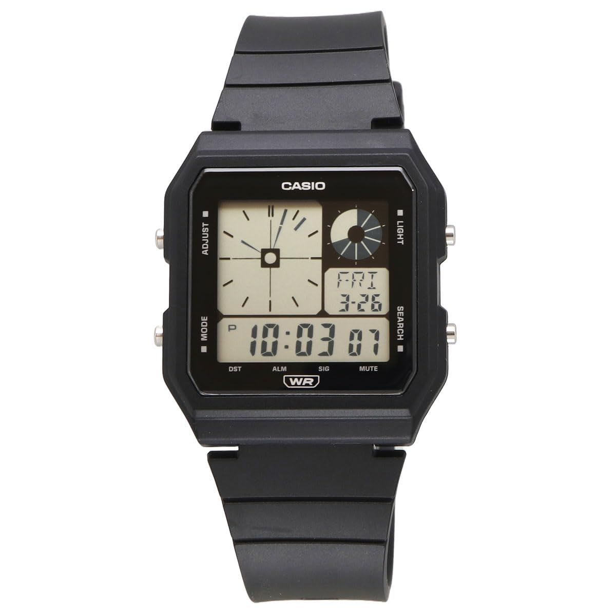| 特徴: | アラーム, クロノグラフ, タイマー, ワールドタイム, 操作音ON/OFF切替機能 |