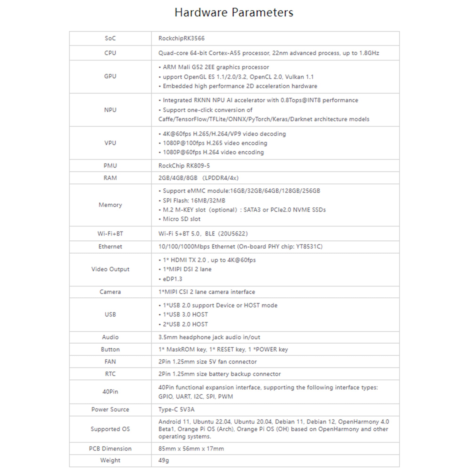 | 付属コンポーネント: | オレンジ Pi 3B |