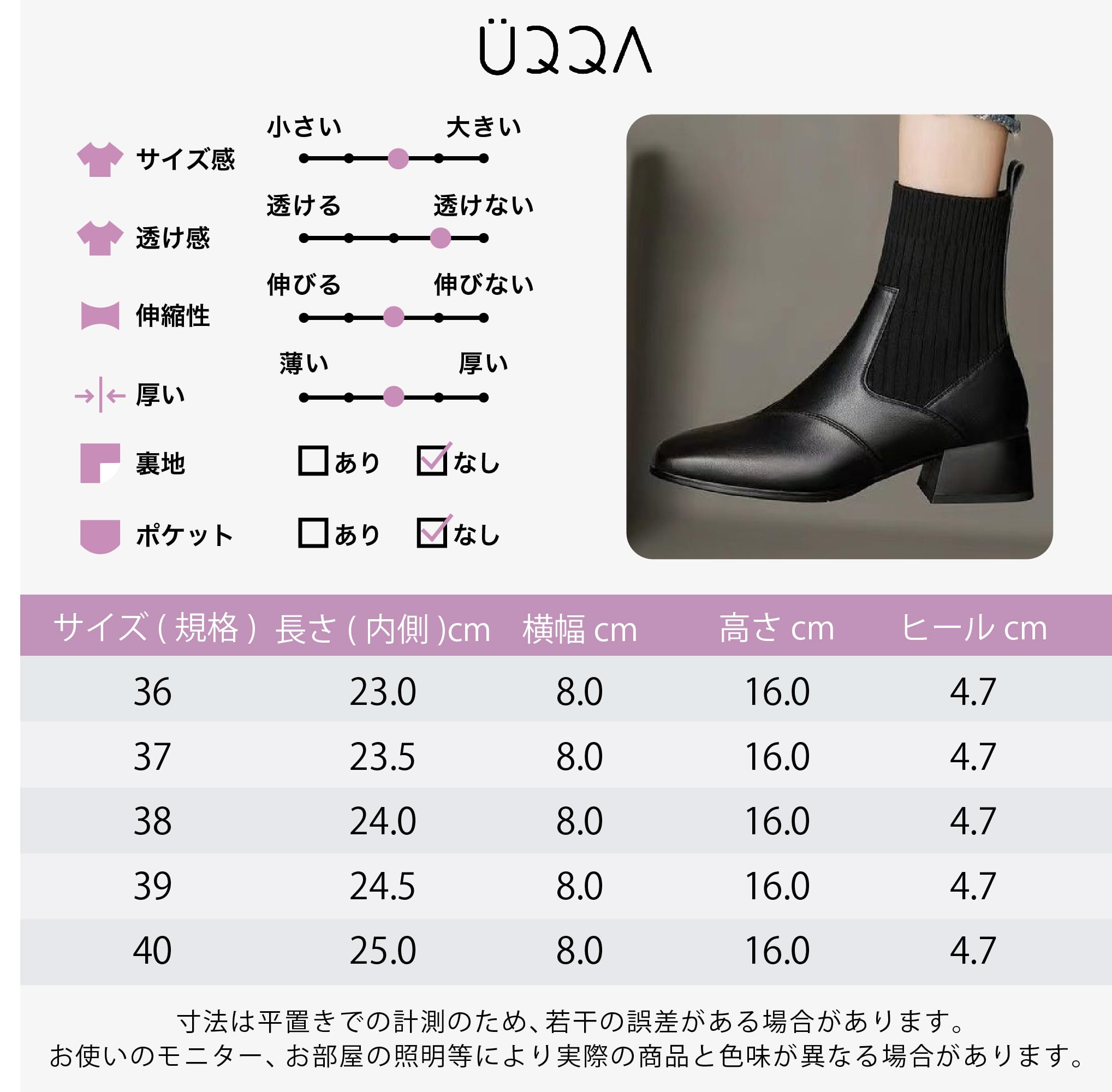 | ふくらはぎの丈: | くるぶしまでの高さ |